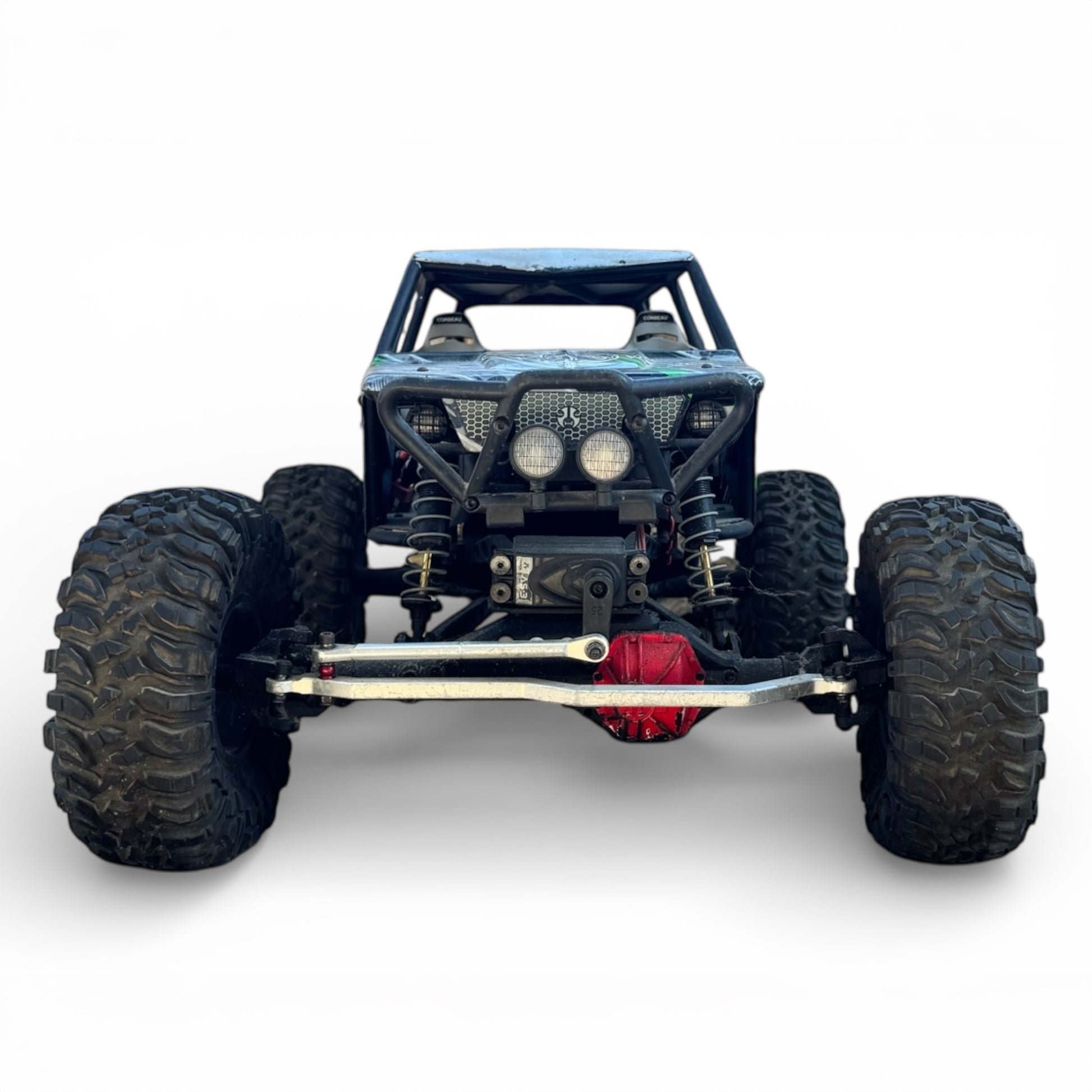 Four wheel with locked differentials and offset pumpkin for more ground clearance and a better driveshaft angle, AR60 OCP-Axle constructed from high strength, low flex composite material, axle tubes are reinforced and beefed up with a boxed-in axle truss to distribute stress over a larger area